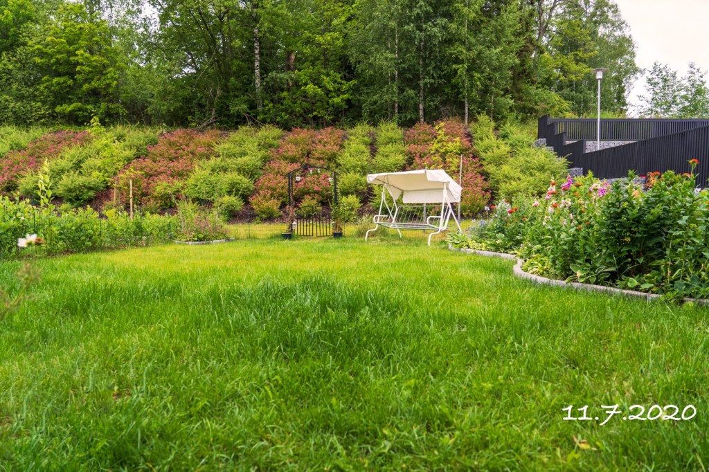 Sade hakkasi kukkapenkin länään ja nurmikko kaipaa leikkuuta
